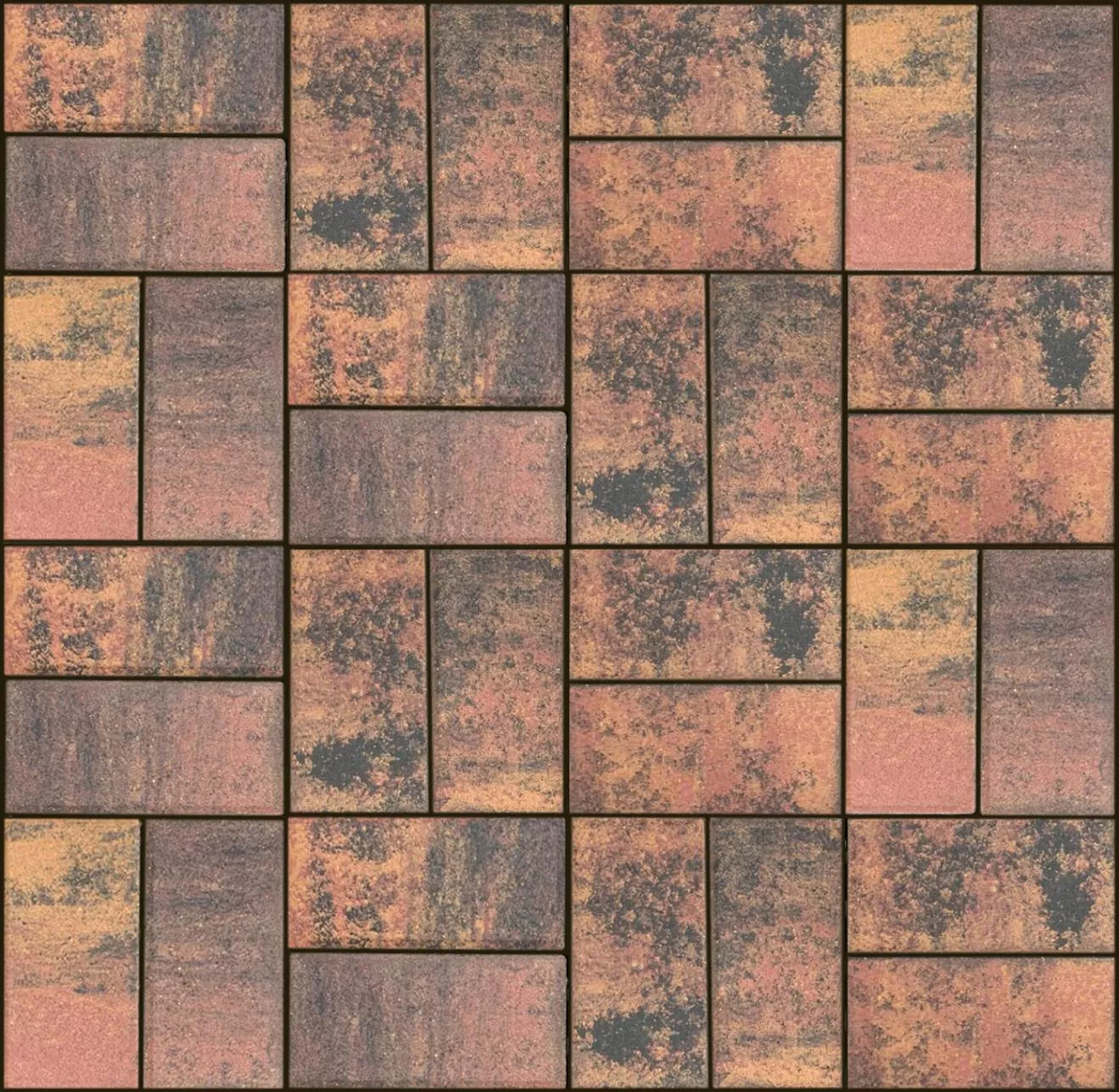 Брусчатка 342 механический завод Прямоугольник (кирпич) ColorMix 200х100х60 мм Вулкан